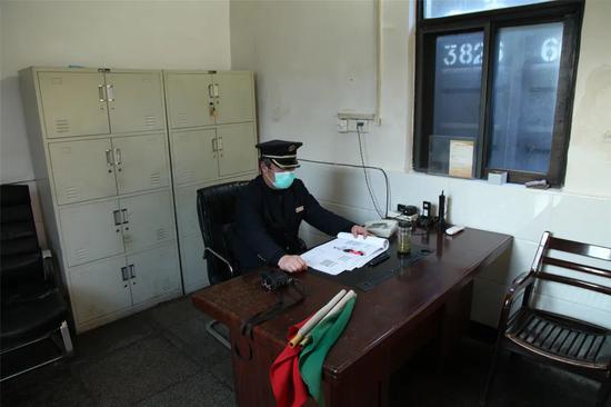信号楼是车站的核心场所,进入前需要经过严格消毒。这里的工作人员全部实行集中封闭管理,疫情期间不能离开车站。