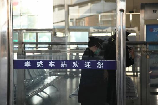 四周异常安静,为站房增添了些许肃穆感。突然传来列车驶过发出的轰隆的声响,提醒着人们这里并未成为“孤岛”,孝感依然同外界保持着联系。