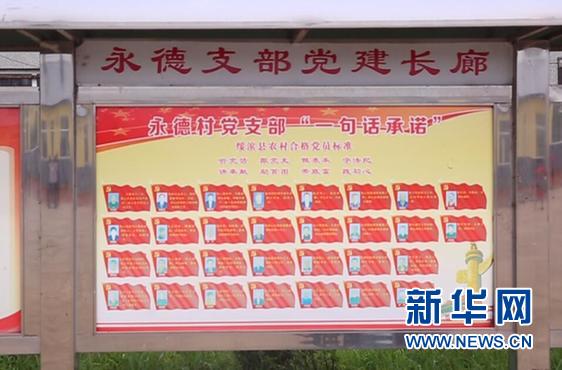 图为永德村宣传栏张贴的党支部“一句话承诺”。新华网陈杰/摄