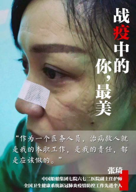 岂曰无衣,与子同袍。有人千里驰援,有人坚守阵地。1月26日,中国船舶(18.740, 0.08, 0.43%)湖北六七二医院被征为新冠肺炎定点收治医院,感染三科护士长张琦虽然骨折尚未痊愈,仍然身先士卒,带领全科护士投入到紧张而又忙碌的病房改造准备工作中,搬运设备、物资,常常加班到深夜,“做好防护,有我打头阵,不要怕。危险的事我来,你们在我身后!”