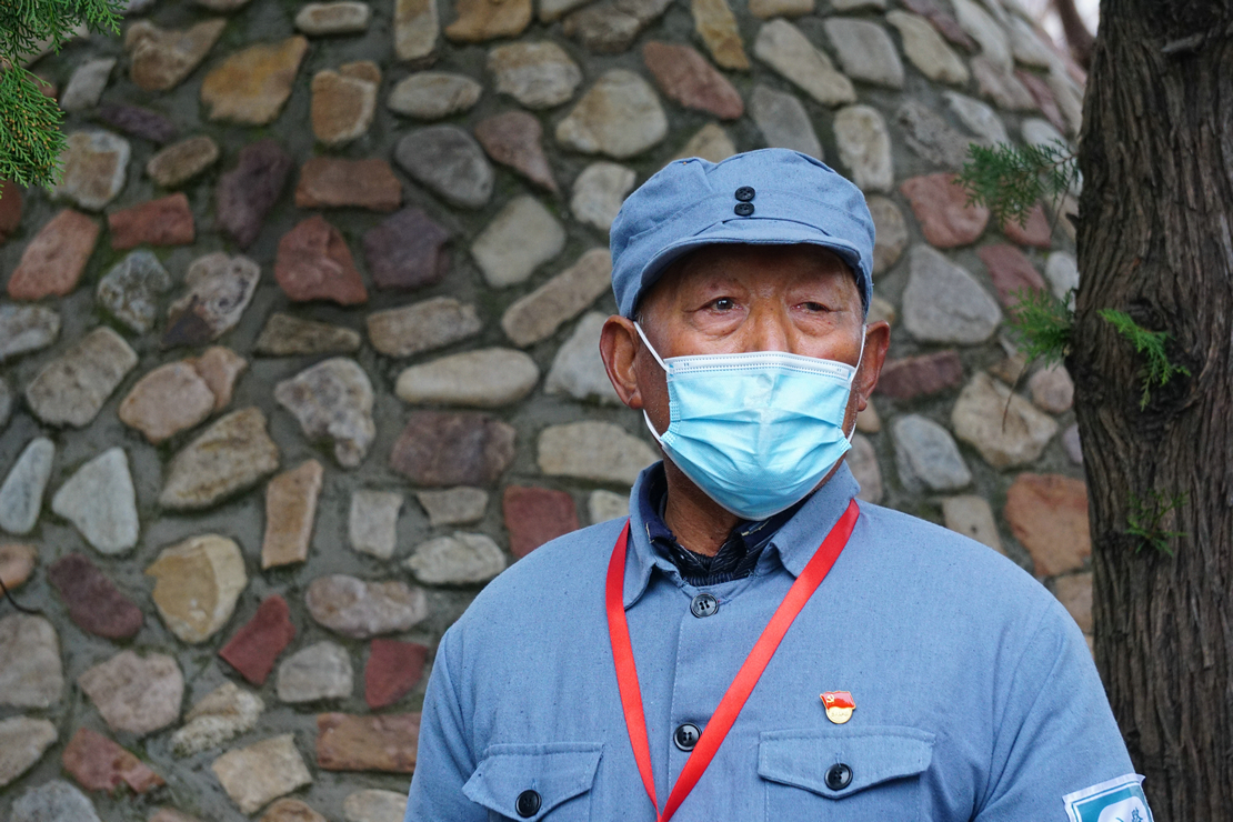 换上八路军军装的郭维继,虽然年近八旬,但健步如飞。战斗遗址在山尖上,他顺着山路,边走边说。“我们一家,都是老党员。我父亲是老党员。我七叔,也是老党员,1942年入党。”七叔郭子林曾是抗战时期,平谷民兵大队大队长,郭维继的抗战故事,都从父亲和七叔那儿听来。