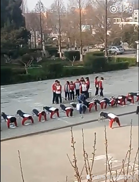 3月15日,有网友爆料称,早上8点多杨陵高中一体育老师体罚学生,让学生做俯卧撑并对其中几名学生动手。该网友还给记者提供了一段视频,从视频中可以清楚看到,几十名学生有的站着,有的腿放在凳子上坐俯卧撑,其中一名老师模样的男子在几名动作不到位的学生身后,手握拳状对其做击打动作。记者还看到这名男老师甚至还对一名学生头部做出击打动作。当天上午,记者来到事发学校。杨陵高中办公室宋主任向记者解释,这是高二十班的学生,由于早读期间个别学生不遵守纪律,所以体育老师让其做俯卧撑。随后记者也见到了涉事的体育课冯老师 ,冯老师说,这是早读完让学生锻炼身体。宋主任表示,学校将会对涉事老师进行批评教育。(记者 李刊 韩永国)