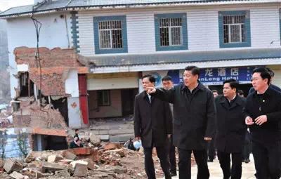 在震中的鲁甸县龙头山镇,习近平踏上废墟查看灾情。在受损严重变形的龙头山镇镇政府大门废墟前,习近平听取了当地干部关于灾区恢复重建的情况介绍。他强调,灾区恢复重建一定要搞好规划,生活恢复和生产恢复一起抓,灾后恢复重建和扶贫开发一起抓,重建家园步伐要加快。要把住房质量放在首位,提高抗震水平,建设抗震民居,确保灾区群众住有所居、住有所安。当前最紧要的工作,是安排好群众生活,确保受灾群众安全温暖过冬。