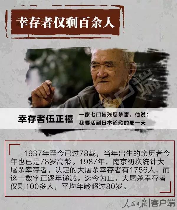 在那场惨绝人寰的屠杀中活下来的他们,每个人都背负着血与泪的记忆。如今,他们大多老去,甚至离世,还剩下百余人。他们,带着对暴行的痛苦记忆,每一个人都是铁证!今天,是南京大屠杀死难者国家公祭日。见证者正在凋零,但真相永远不应沉没!