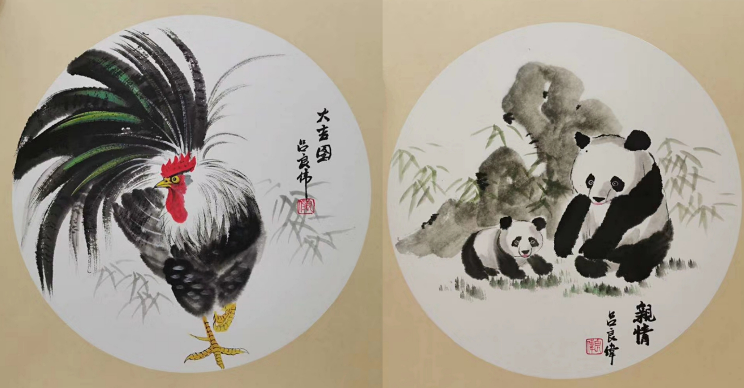 吕良伟特别喜欢公鸡.他画的公鸡深得老师邢东的真传,墨色和色彩的渲染特别到位,尤其是雄赳赳的风采描绘的惟妙惟肖。