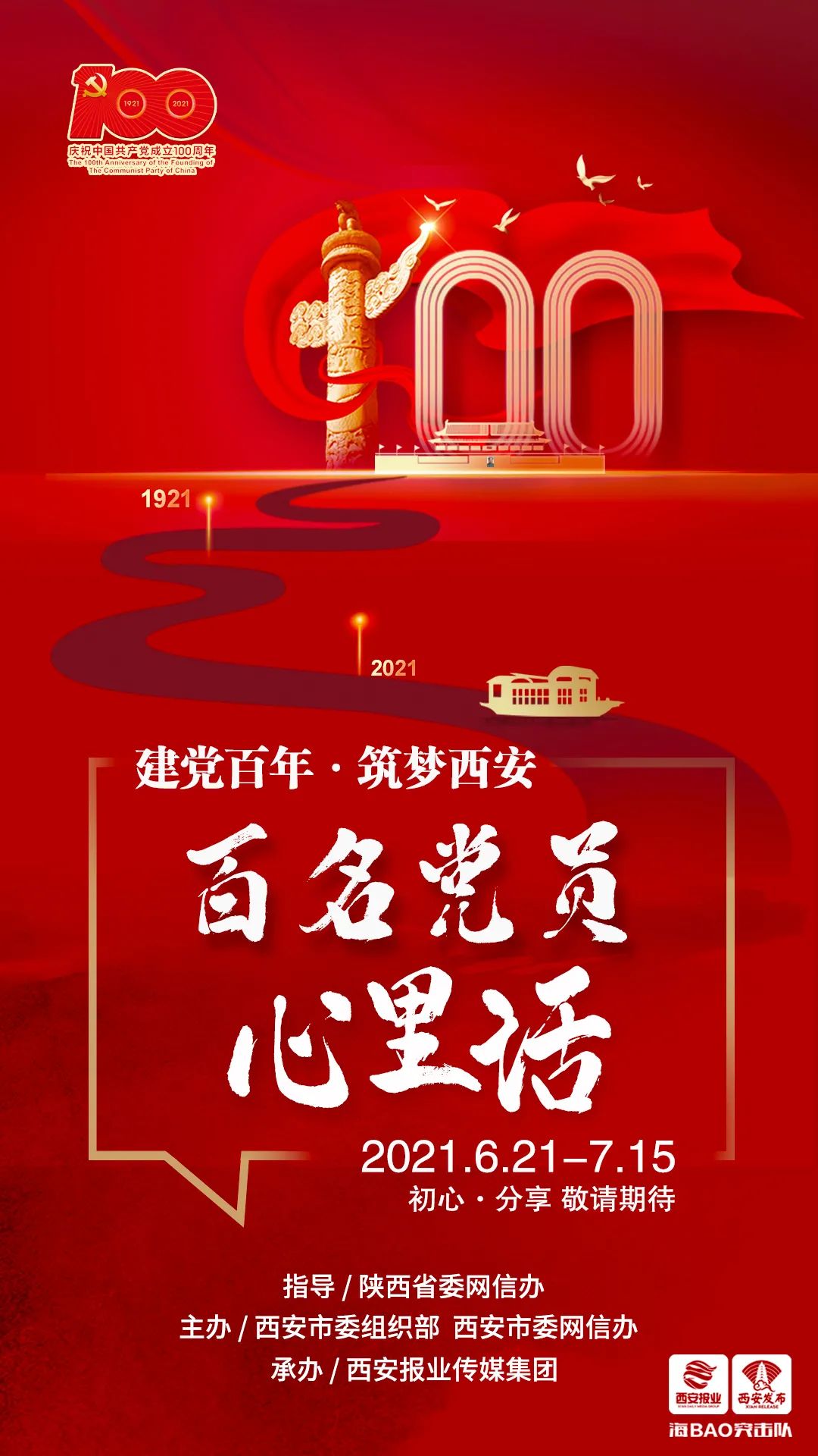 在新的历史阶段,百年大党正以青春风貌,乘势而上、开拓进取,在新起点上推进民族复兴伟业。喜迎党的盛典,人民的节日,在中国共产党建党100周年之际,由陕西省委网信办指导,西安市委组织部、西安市委网信办主办,西安报业传媒集团承办的“建党百年·筑梦西安——百名党员心里话”网络传播活动将于6月21日至7月15日在西安举行。