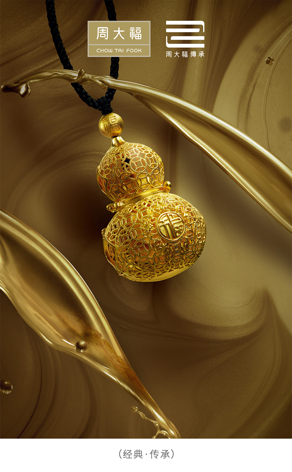 周大福传承,以黄金、结合现代审美重铸传统经典,引领时尚潮流,展现传统工艺之精湛,致敬中华文明之璀璨。每一件工艺精湛的传承,承载着美好祝愿,传递着每一份爱,更珍藏着心中挂念。致力推广传承传统工艺,专注弘扬中华文化,成为黄金珠宝传统工艺传承、传统文化现代演绎的卓越倡导者,是周大福传承不变的品牌使命。