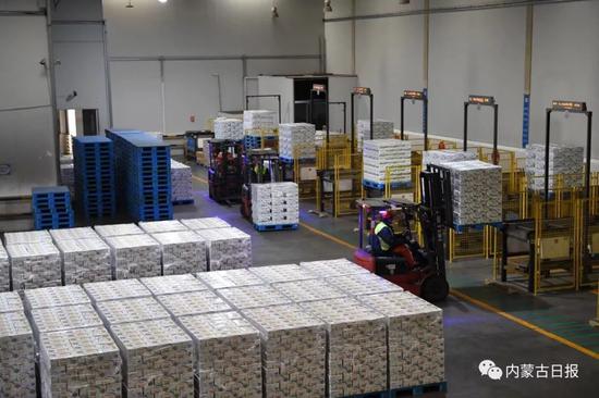 2月11日下午2点,一件件牛奶在呼和浩特市集装上车。内蒙古支援湖北省乳制品和肉制品等生活必需品今日启运。