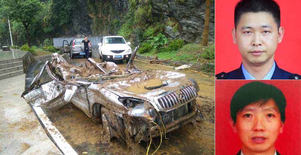 8月10日凌晨3时许,霍山县佛子岭镇党委书记何必山和副镇长陈贵春等一行四人在辖区内巡查险情,在巡查至该镇黄岩杠路段时,发现有险情,于是停车后,有两人先下车前去查看,就在书记和副镇长也推门下车时,突然遭遇山体滑坡,将车掩埋。