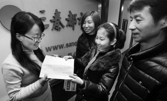 期间,孩子的爸爸妈妈说,孩子为了在下午上学前送这封信,急得连中午饭都没顾得上吃,就急急赶来了。当听说记者下午就替她送信,张嘉淼高兴地连声道谢。