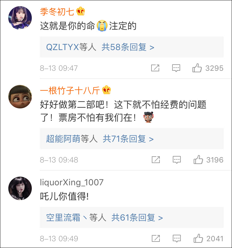网友们沸腾了:吒儿勇敢飞,藕粉永相随!