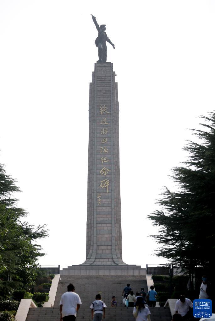 10月4日,游客在山东省枣庄市薛城区铁道游击队纪念广场游览。
