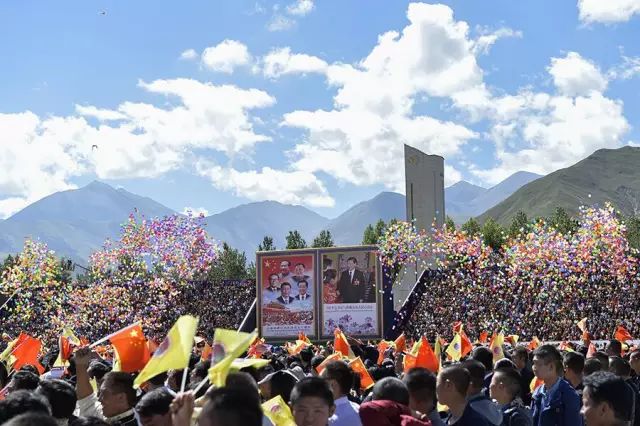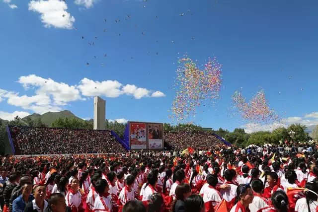 今天上午,西藏自治区成立50周年庆祝大会在拉萨布达拉宫广场召开