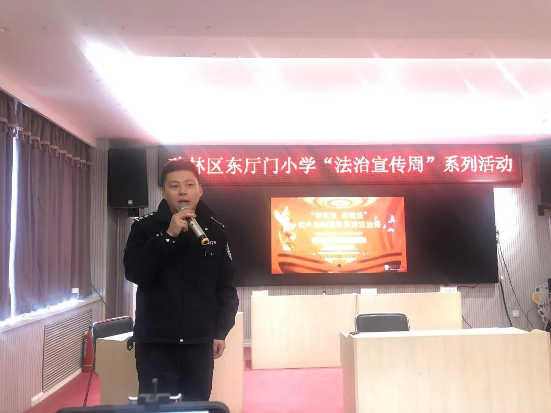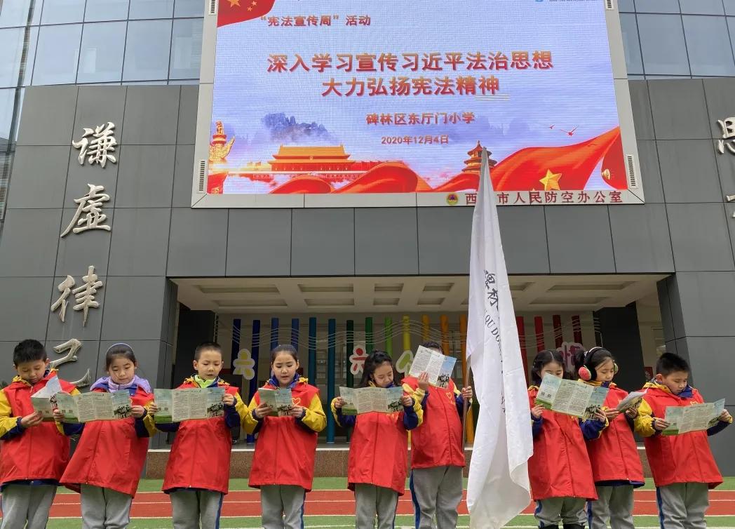 为深入学习宣传习近平法治思想,大力弘扬宪法精神。在第七届国家宪法日到来之际,在碑林区教育局的安排部署下,碑林区东厅门小学开展“宪法宣传周”系列活动。出席活动的有碑林区法院刑庭副庭长刘晓光、碑林区柏树林派出所户政所长张梦真、碑林区教育局基教一科科长盛青、碑林区法院民事庭法官周伟、碑林区教育局宣传科石娟、碑林区碑林区柏树林派出所疙瘩寺社区民警张雪涛等。