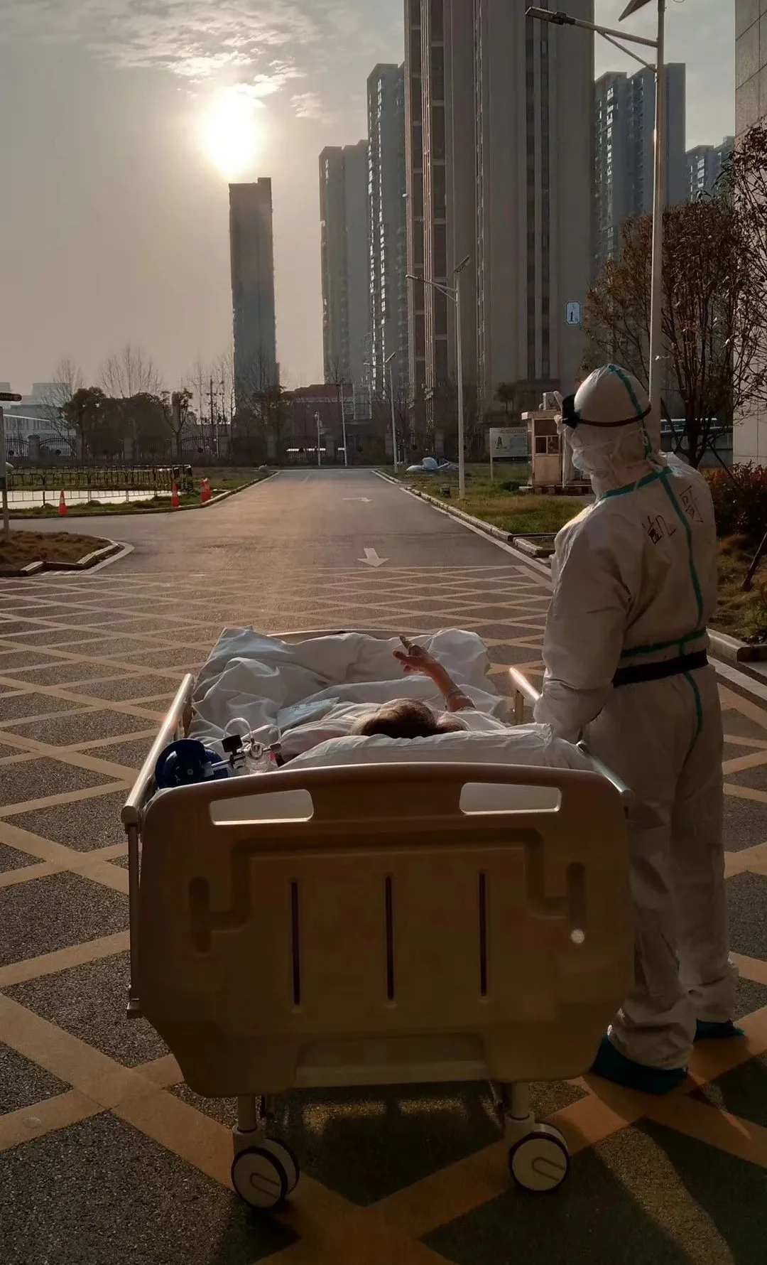 2020年3月5日,21岁的大学生志愿者甘俊超按动快门,定格了新冠重症患者、原武汉爱乐乐团小提琴演奏家王欣和上海援鄂医生、复旦大学附属中山医院重症医学科呼吸治疗师刘凯共赏夕阳的时刻。