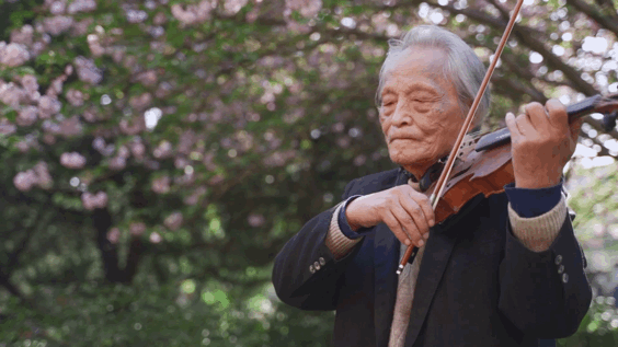 痊愈一年之后,在满树的樱花下,89岁高龄的王欣再次奏响马斯涅的《沉思曲》,献给曾与他朝夕相处的上海援鄂医护们,并由此开启了一场双城“樱”乐会。