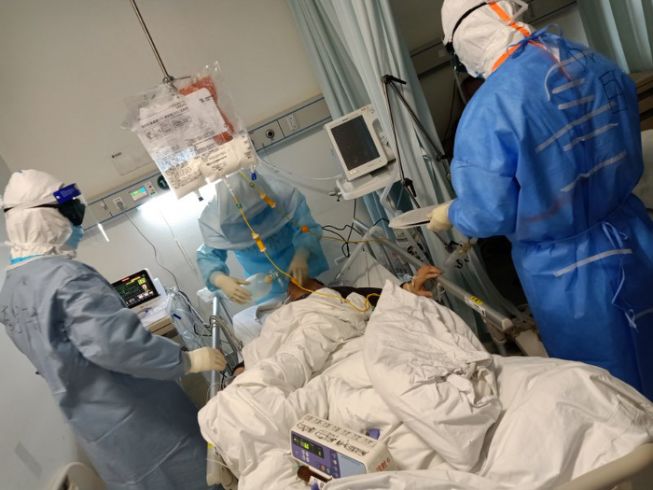 我们是来自北京大学第三医院的国家援鄂医疗队,驻扎在同济医院中法新城院区,主要负责收治重症和危重型的新冠肺炎患者。截至目前累计共参与3个病区的组建,收治病人约140例。