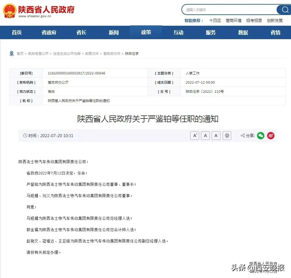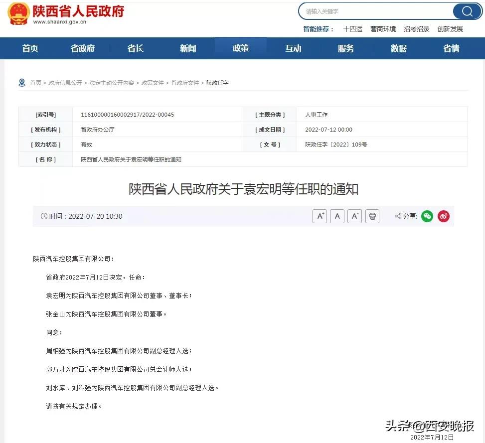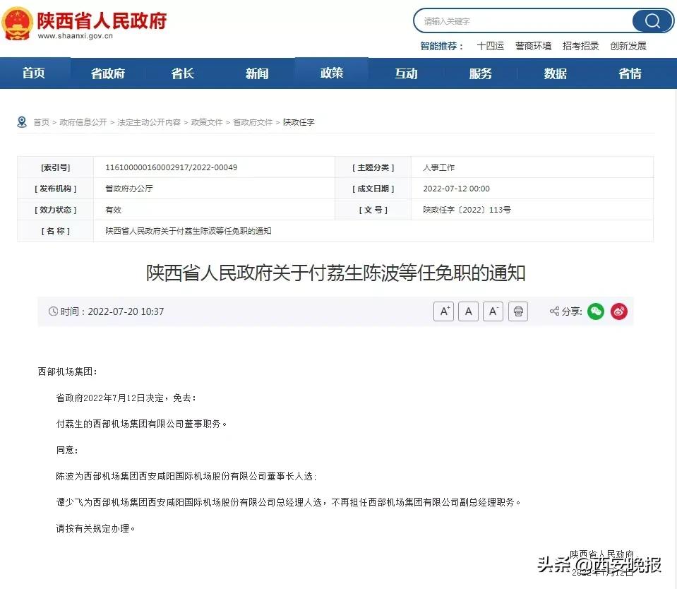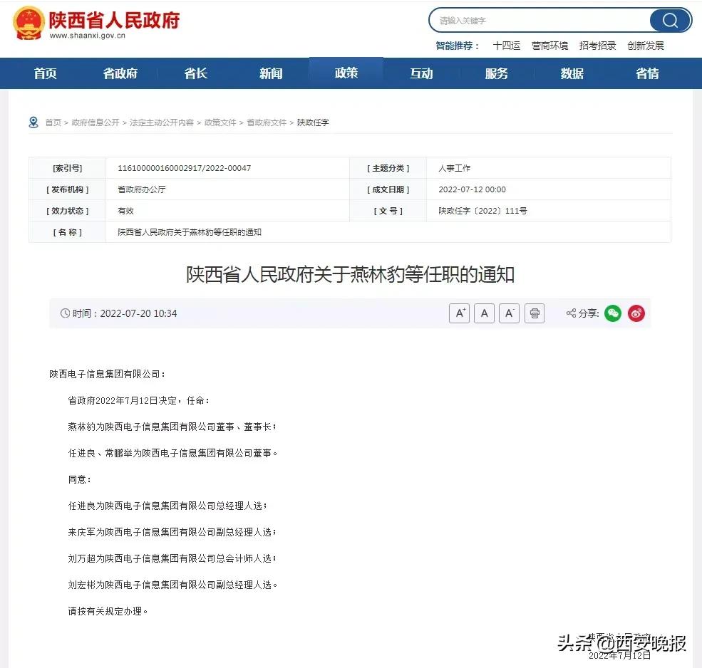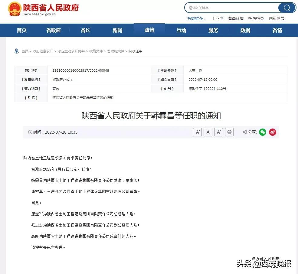 7月20日,陕西省人民政府网站发布一批人事任免职通知,具体如下: