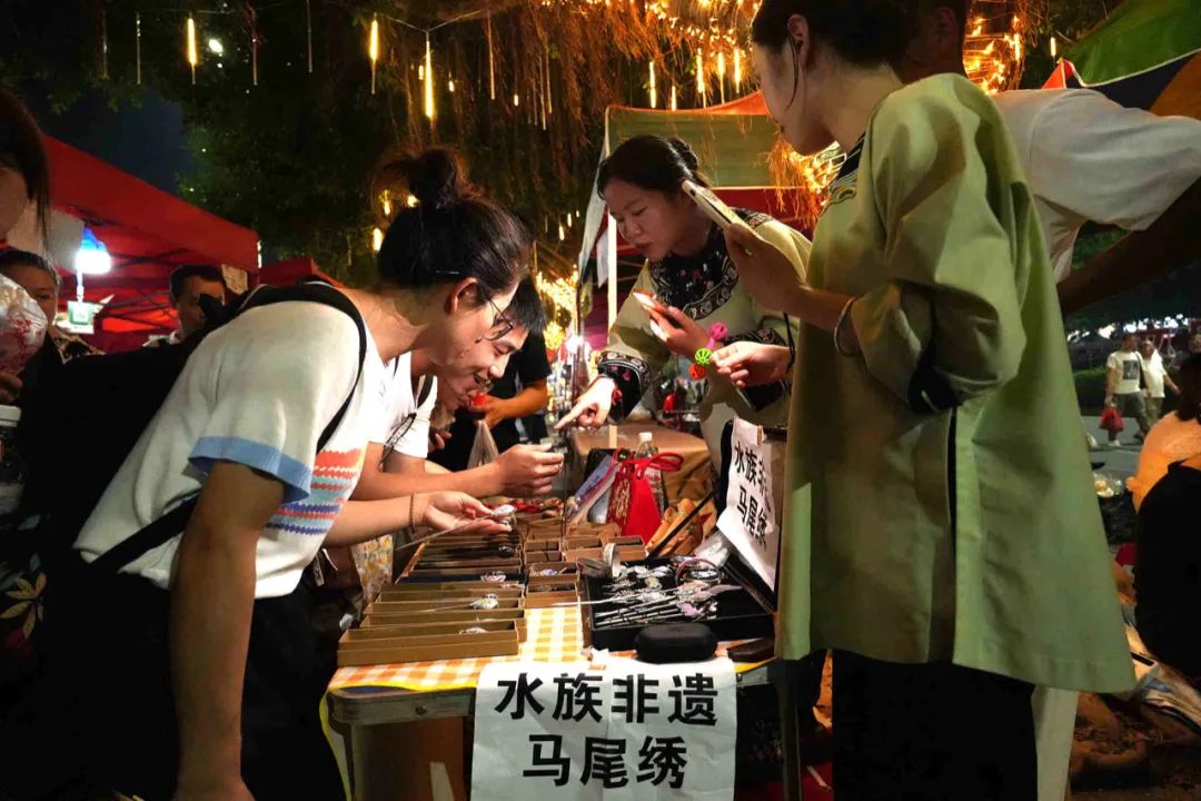 一位卖榕江卷粉、芋头糕等特色小吃的小吃摊摊主说:“我们从早忙到晚,摆摊到凌晨1点钟左右,人太多了,一天能卖几百碗。”