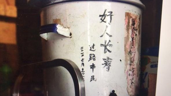 三代人的传承,三代人的坚守。顾忠根总是用着一个搪瓷茶缸,上面写着“好人长寿”,落款人是“过路市民”,时间是2010年7月。