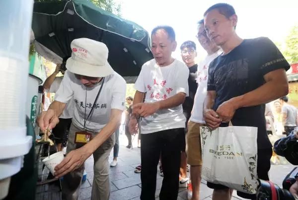 志愿者葛师傅已经是第六年过来和老人一起出摊:“我们肯定要接班接到底的,我们做了,然后年纪大了,下面再接上来,一代一代的接下去,这个凉茶摊肯定永远在这里。”