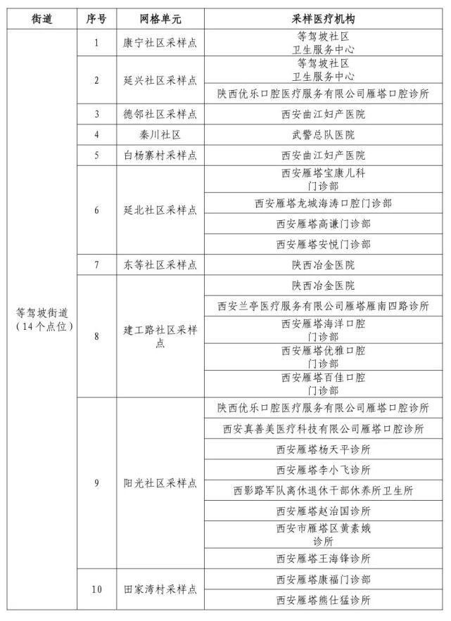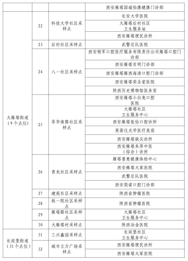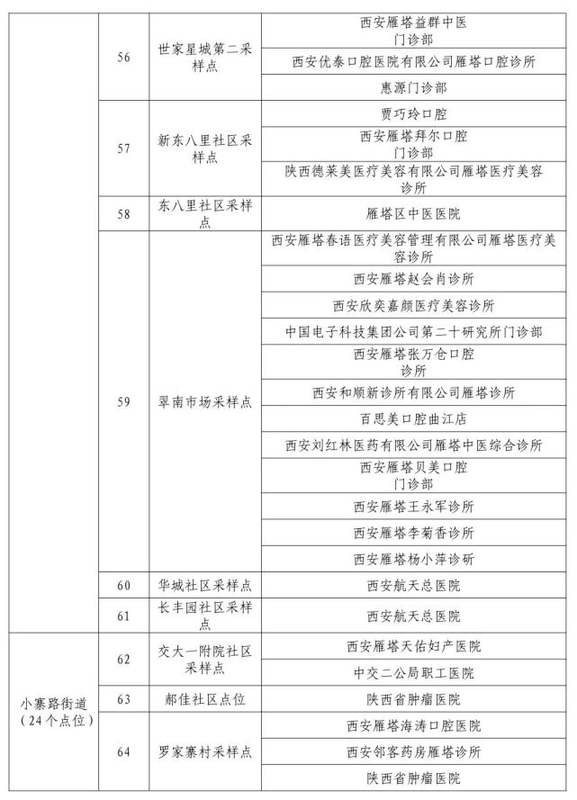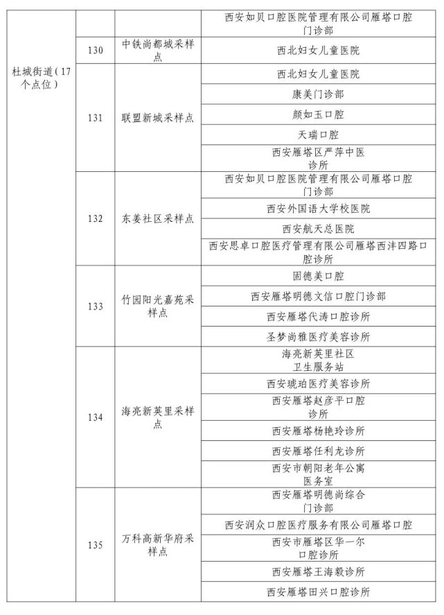 10月19日,西安雁塔区在辖区八个街道162个网格单元全面启动全员核酸检测,目前正在连夜开展。点位地址如下,请市民朋友就近选择,前往检测。
