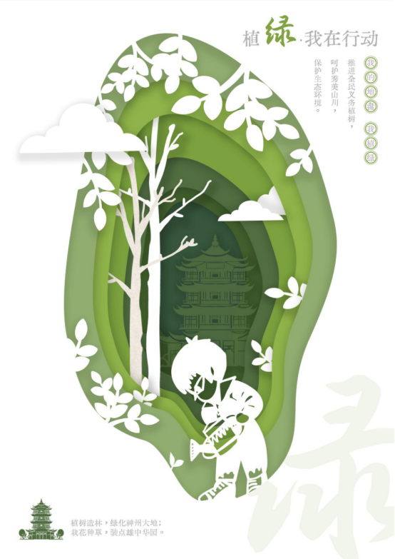 活动持续近三个月,吸引了武汉大学、华中科技大学、武汉理工大学、华中师范大学、中南财经政法大学等70多所在汉高校参加,共征集到1000多件作品。为了宣传推广全民义务植树八类尽责形式,武汉大学生们开动了怎样的创意?让我们一起欣赏部分获奖作品的风采——
