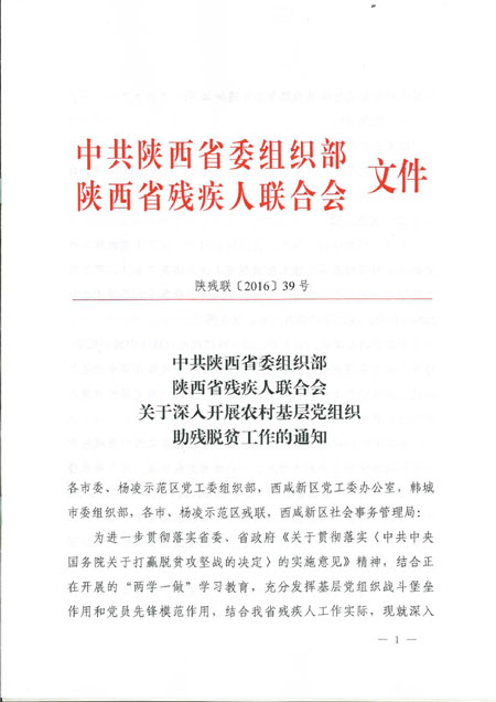 中共陕西省委组织部 陕西省残疾人联合会 关于深入开展农村基层党组织助残脱贫工作的通知