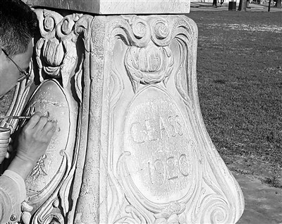 15日,由于刷漆工人不懂外语,所以依据日晷基座上原有的痕迹直接描写,误将“CLASS”写为“CEASS”。第二天,负责检查工作的老师发现了这一问题,及时予以纠正。“16日,后勤处工作人员对刻痕进行了修复和打磨。因为刻字面为弧面,所以打磨力度不能太重,虽然现在修复处和周边仍有色差,但经过一段时间的风吹雨淋,颜色会自然趋同。”