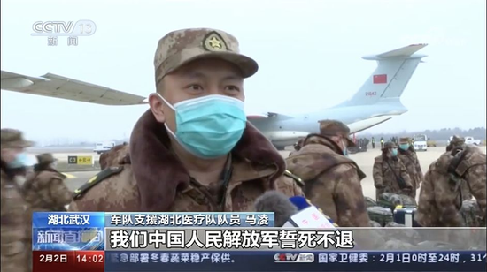 “我想请全国人民放心,在疫情面前,我们中国人民解放军誓死不退!一定护佑大家的平安和健康”,军队支援湖北医疗队队员马凌在接受央视采访时说。