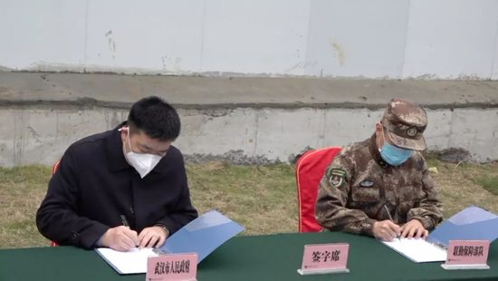 今天(2日)上午,武汉火神山医院举行交付仪式,武汉市市长周先旺和联勤保障部队白忠斌副司令员在武汉火神山医院签署互换交接文件,标志着火神山医院正式交付人民军队医务工作者。