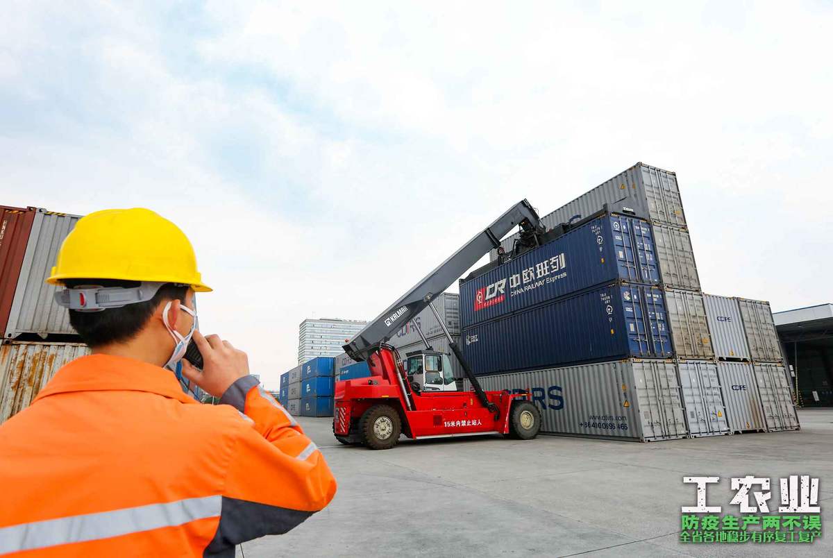 青白江成都铁路口岸正在吊装中欧班列集装箱。