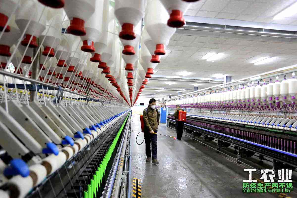 仁寿县金鹅纺织有限公司,工作人员正在对车间进行消毒,开始复产复工。