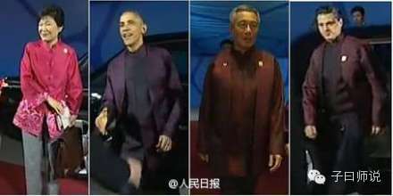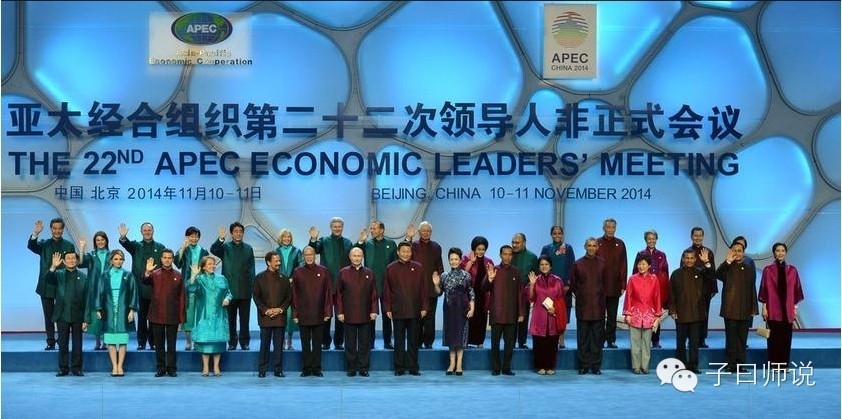 在书立方的中国风文艺演出之前,所有参加APEC领导人身着“新中装”,拍摄了一张浓郁中国韵的全家福照片。(以下内容整理自网络)