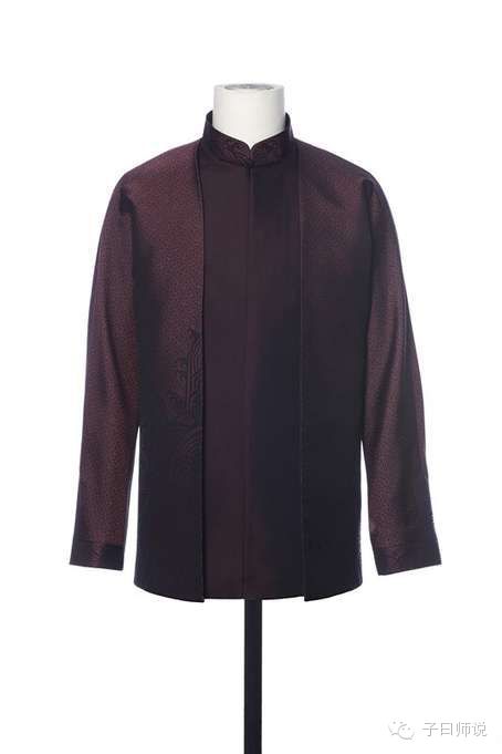 男领导人服装采取了立领、对开襟、连肩袖,提花万字纹宋锦面料、饰海水江崖纹的设计。