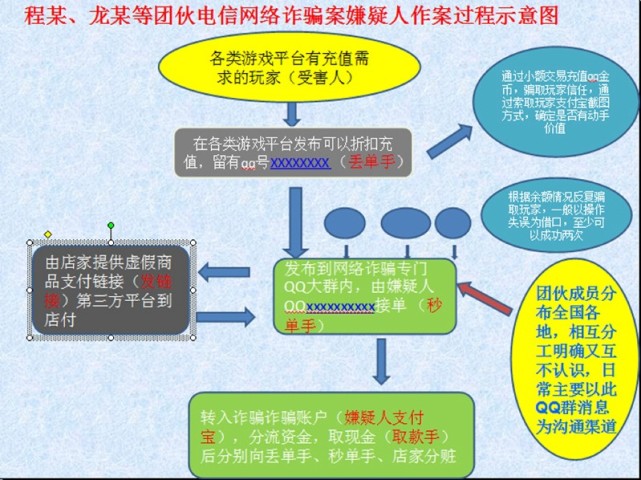 程某、龙某等团伙电信网络诈骗案嫌疑人作案过程示意图