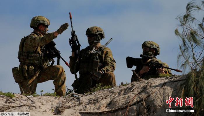 资料图:当地时间2017年7月13日,美澳两国士兵在澳大利亚参加两年一次的“护身军刀”联合军演。