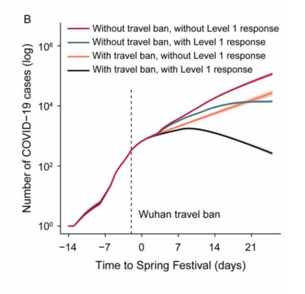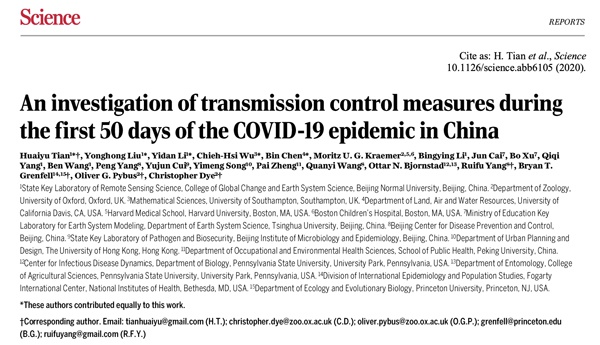 近日,《科学》(Science)杂志在线发表了来自中国、美国和英国的22位科学家联合完成的研究成果——“中国COVID-19疫情暴发的最初50天内传播控制措施的调查”。文章指出,武汉出行禁令将其他城市的疫情暴发时间平均推迟2.91天,让中国新冠肺炎感染者的总病例数减少96%,对疫情的遏制起到了至关重要的作用。没有干预措施情况下,武汉外确诊病例在疫情暴发第50天或累计超70万。