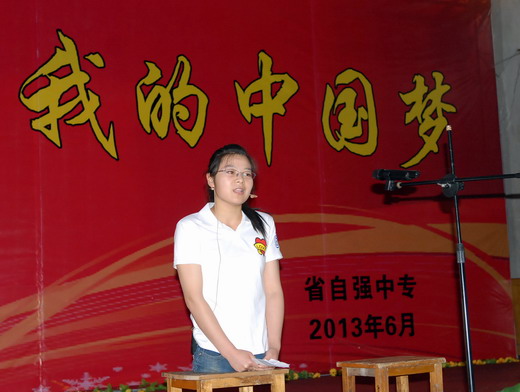 渭梅女在学校当日举行的“畅想我的中国梦”演讲中第一个登台演讲
