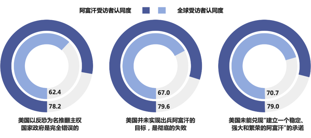 △图1全球及阿富汗受访者对美国发动阿富汗战争及其承诺的看法