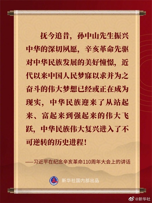 纪念辛亥革命110周年大会9日上午在北京人民大会堂隆重举行。习近平出席大会并发表重要讲话。看要点: