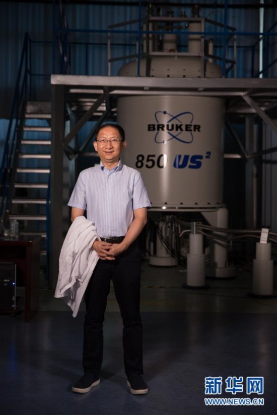 研究员王俊峰在合肥科学岛上的中科院合肥物质科学研究院强磁场科学中心(8月17日摄)。