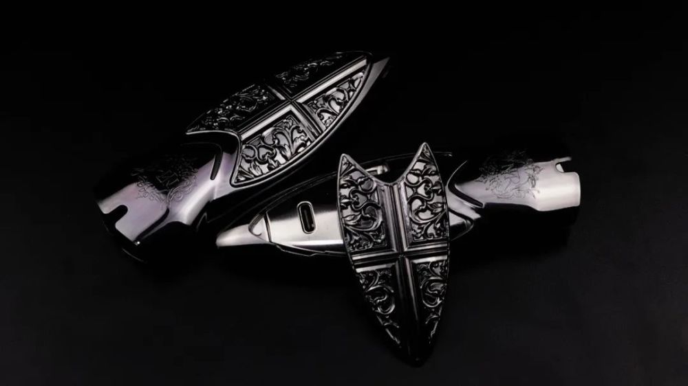 产品外观本身也更倾向于一体式成型结构(磁吸盖为独立设计),线条顺畅且拥有“BabySkin”顺滑触感。整体外形类似于“盾牌”与“长剑”之间的V形结合体,且其哥特式艺术融合了品牌复古与新潮交融的独特哲学。16.4*34.5*102.2mm的尺寸相较于传统产品来说更为宽厚,通过层层打磨及精雕细琢的美观度及体验感,搭配其人体工程学设计的手持握感更具舒适性。